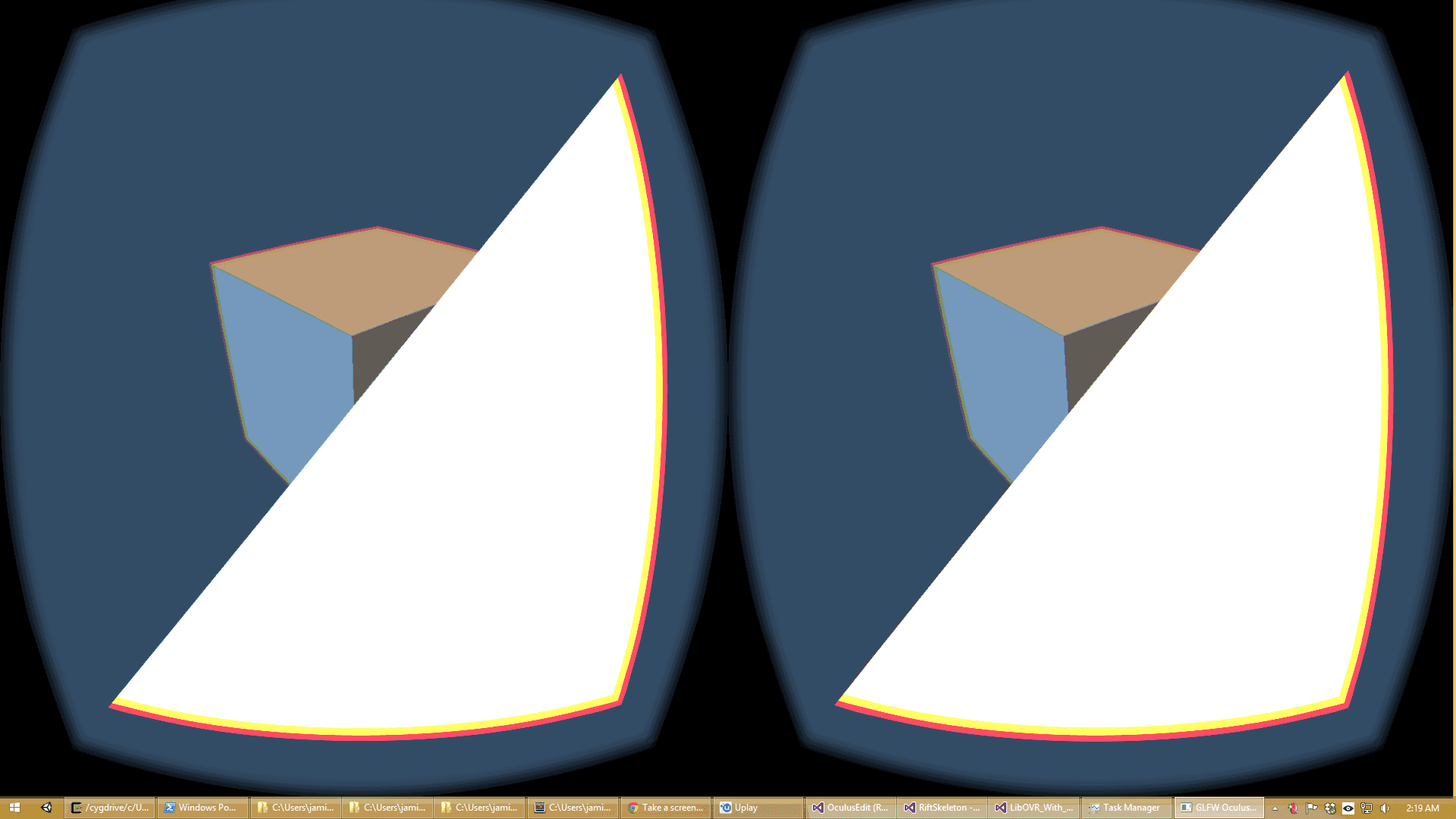 I’m starting to realize how far I have to go to get anything really awesome built in VR using nothing but the SDK and OpenGL. I’m getting closer, but even getting the basic shaders and object loaders into place is going to be one hell of a long journey.