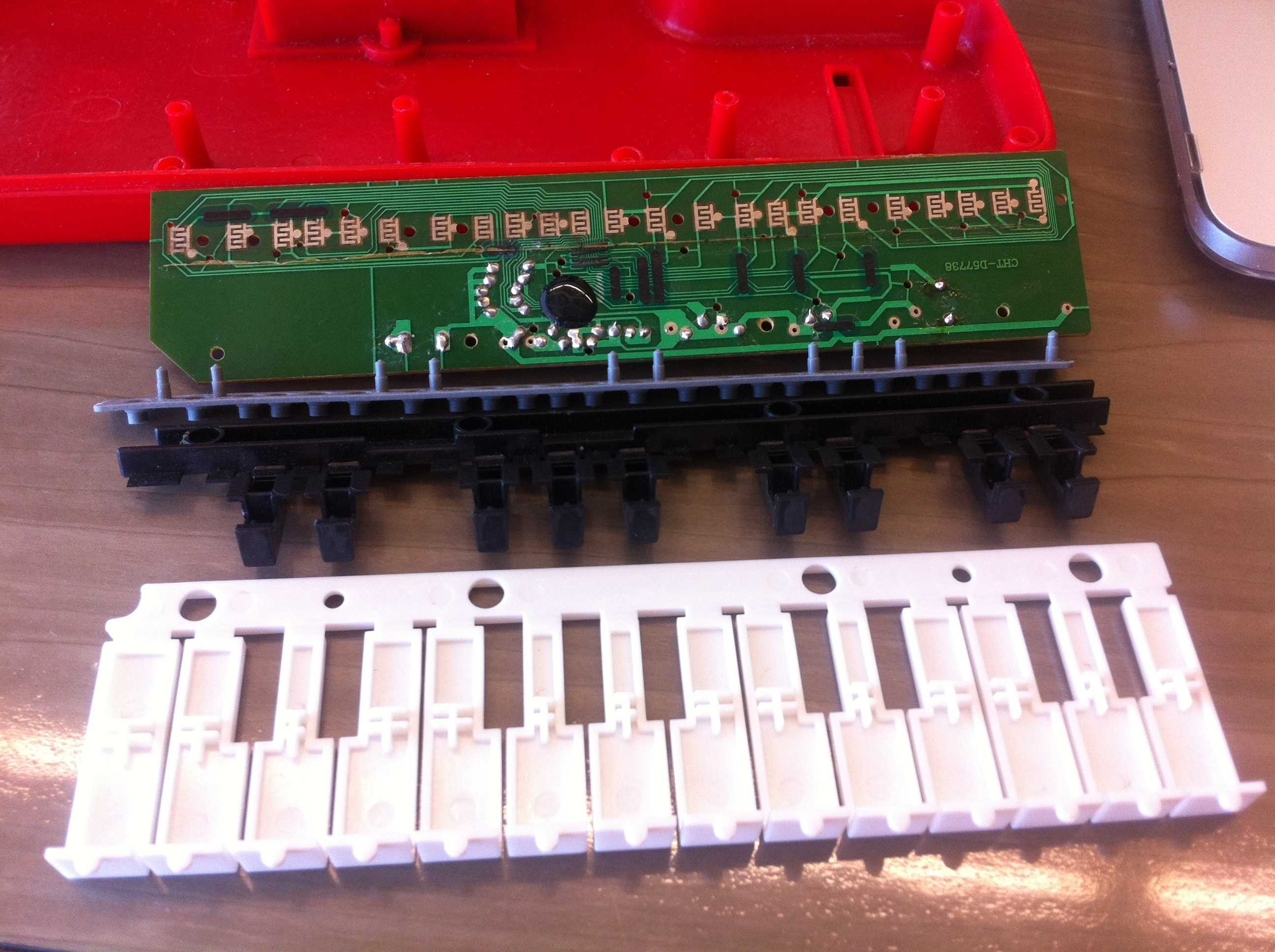 Now that I’ve finally started build out a eurorack format modular synth, I’ve pulled this thing out of the rubbermaid I keep all my electronics crap in and decided to give it another go at life as a CV and Gate source. The keyboards made for controlling modular synths are pretty expensive so building a little, cool, portable stand in sounds like a fun project.
